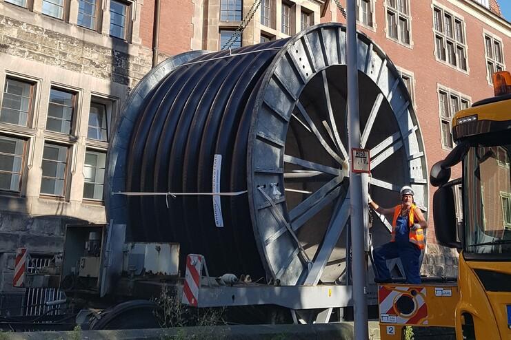 Im Rahmen der Neugestaltung des Hüffer Campus in Münster wird die Fernwärmeversorgung für den Campus erneuert. Der Anschluss erfolgt von einer Bestandsleitung im Schloßgarten neben dem Schloßgarten Café und führt durch die Schloßgarten Allee, unterhalb der Gräfte entlang der Robert-Bosch Straße. Bei dieser Baumaßnahme übernimmt nts die Planung der Freianlagen und Fernwärmeanlagen. Eine besondere Herausforderung sind die Bohrungen die unterhalb der Schloßgräfte in einer Länge von jeweils 230 m und einem Durchmesser von 40-50 cm hergestellt werden. Die Fernwärmeleitung wurde mittels Schwertransport auf Spulen mit einem Durchmesser von 6 Meter angeliefert.