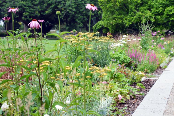 Seit letztem Wochenende ist der „neue“ Rosengarten am Dasselwall nach umfangreichen Umgestaltungen wieder für die Öffentlichkeit zugänglich und bietet viel Raum zum Verweilen und für Spaziergänge. Über 3.600 Stauden, Gräser, Rosen und neue Bäume wurden hier gepflanzt, Wege aus Natursteinelementen angelegt und das Blumenbeet vor dem Springbrunnen hat einen sogenannten Wechselflor erhalten. Des Weiteren haben wir bei der Planung großen Wert auf die Erhaltung der alten Bäumbestände und großen Sträucher gelegt.