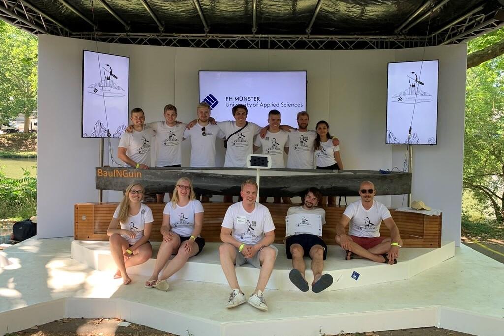 Mit selbst gebauten Booten gingen Studierende bei der 17. Deutschen Betonkanu-Regatta am 28. und 29. Juni in Heilbronn an den Start. Im Wettbewerb ist eine komplexe Aufgabe zu lösen: die Festigkeit und Wasserdichtheit der Baustoffe so in der Konstruktion zu nutzen, dass leichte und gleichzeitig robuste Kanus entstehen. Und dann gilt es noch, das Rennen zu gewinnen - Eine technische und sportliche Herausforderung. In fast elfmonatiger Arbeit, die u. a. von nts finanziell unterstützt wurde, bauten die 14 Studierenden des Fachbereichs Bauingenieurwesen ihr Boot „BauINGuin“ und sicherten sich den begehrten Konstruktionspreis!