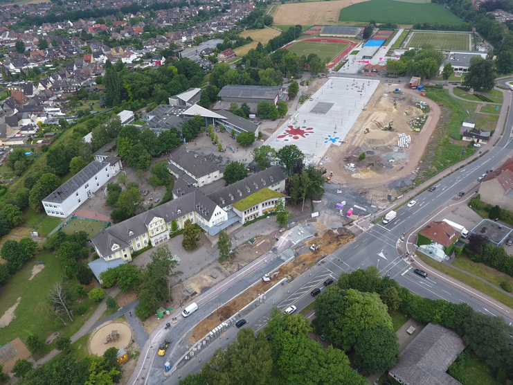 Das Areal des Campus umfasst eine Fläche von insgesamt ca. 14 ha. Es galt, die hier vorhandenen Schulen, Sport- und Freizeiteinrichtungen funktional und gestalterisch zu verknüpfen und zu ergänzen.