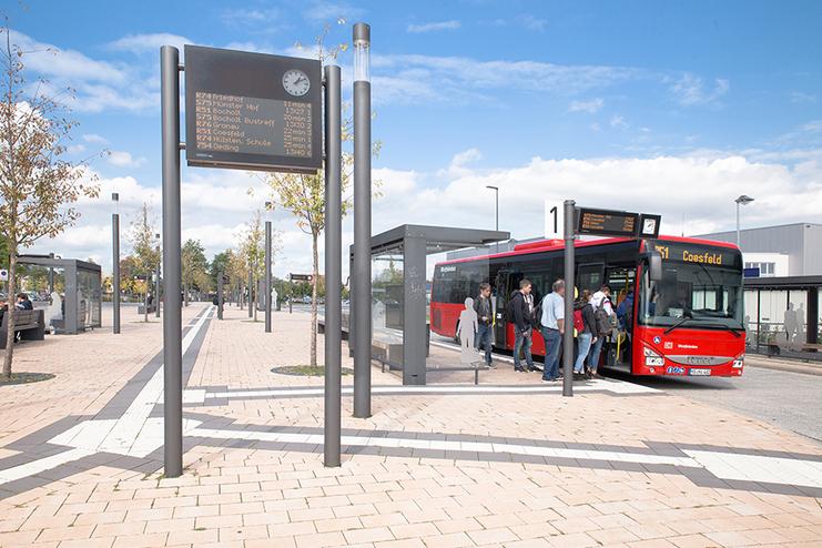 Radwegekonzept, Verlegung des Bahnhaltepunktes, Verlängerung und Ausbau der Bahnhofstraße für Zweirichtungsverkehr, 2 Businseln mit 4 bzw. 3 barrierefreien Haltestellen, 2 Bus-Warteplätze,