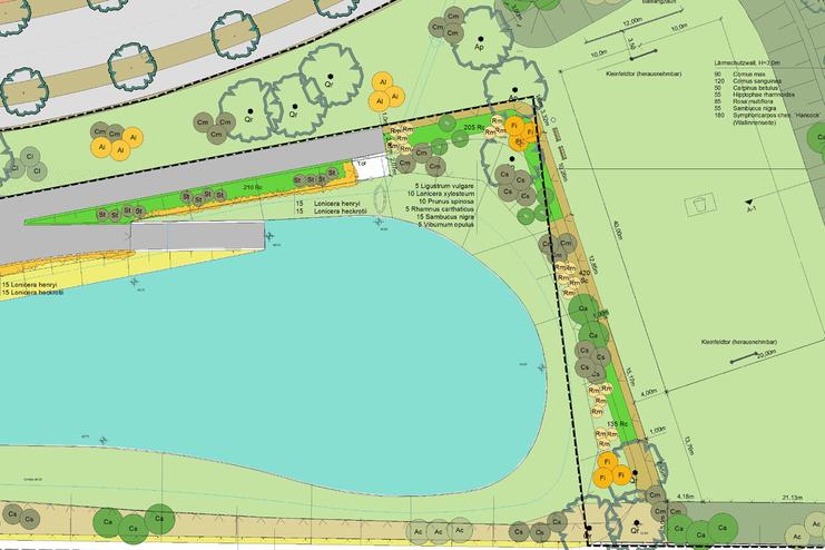 Entwässerung des Neubaugebietes und der angrenzenden Verkehrsflächen, Gesamtanschlussfläche 15,25 ha, Schmutzwasser: 2.450 m, DN 250, Regenwasser: 2.450 m, DN 300 bis 1000, Regenrückhaltebecken, Gewässerdurchlass