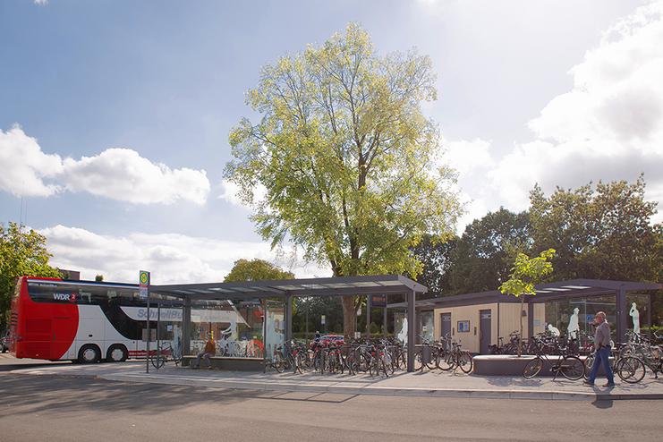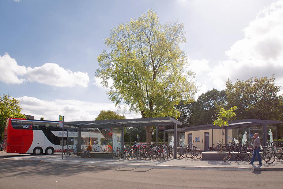 Verlegung des innerstädtischen Haltepunktes; Neubau von 4 Busstellplätzen, Neubau Überdachungen für 120 Fahrradstellplätze und Öffentliche Toilettenanlage, 35 PKW Stellplätze mit integrierter P&R-Anlage