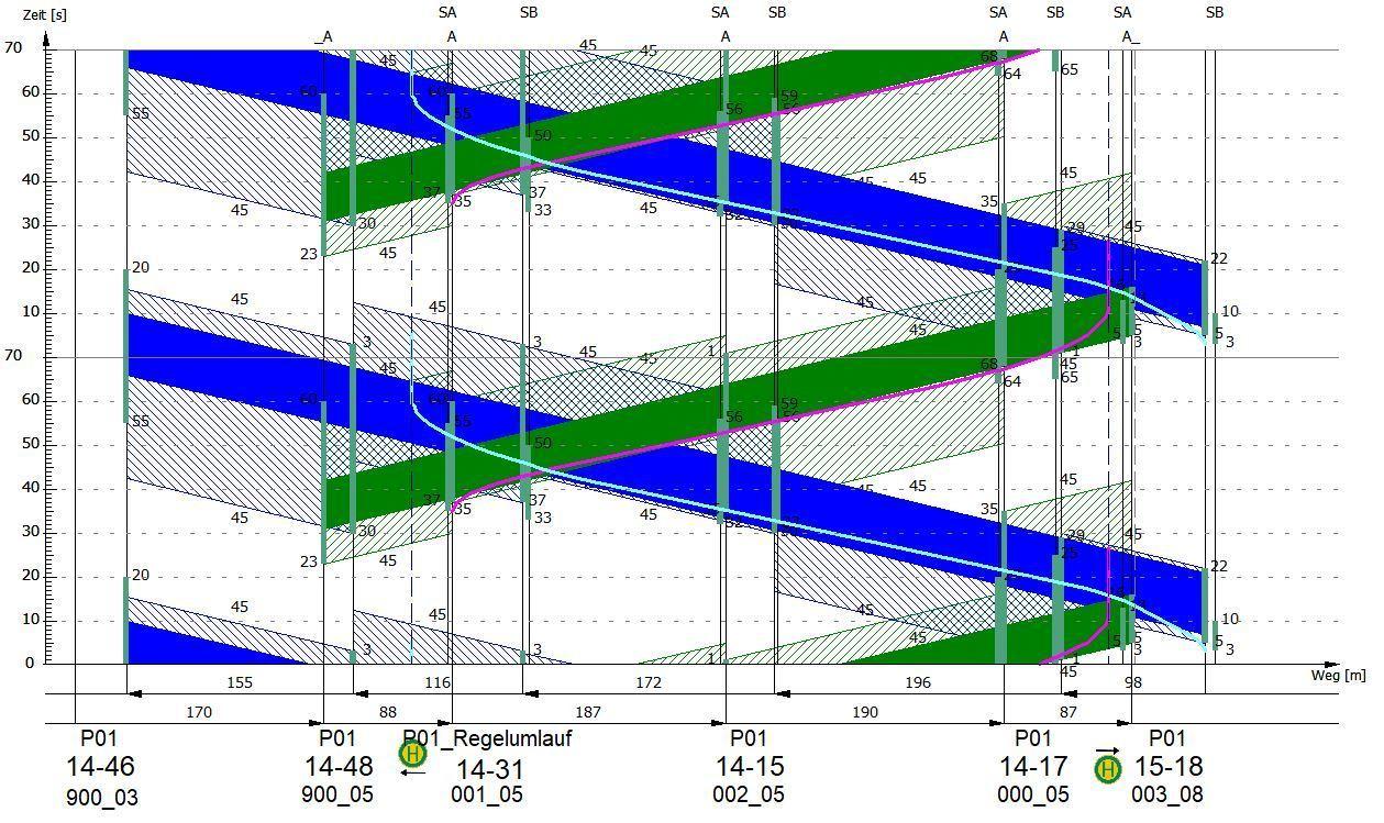 Die Projektierung wurde vollständig im Planungssystem LISA+ durchgeführt. Die erstellte Steuerung wurde gut nachvollziehbar und über Parameter leicht einstellbar gestaltet. Die je Lichtsignalanlage erzeugte LISA+ Versorgungsdatei diente den Signalbaufirmen als Grundlage für die Steuergeräteversorgung. Neben der ÖPNV-Beschleunigung (Bus und Tram) wurde besonderes Augenmerk auf die Koordinierung zu benachbarten Lichtsignalanlagen gelegt.