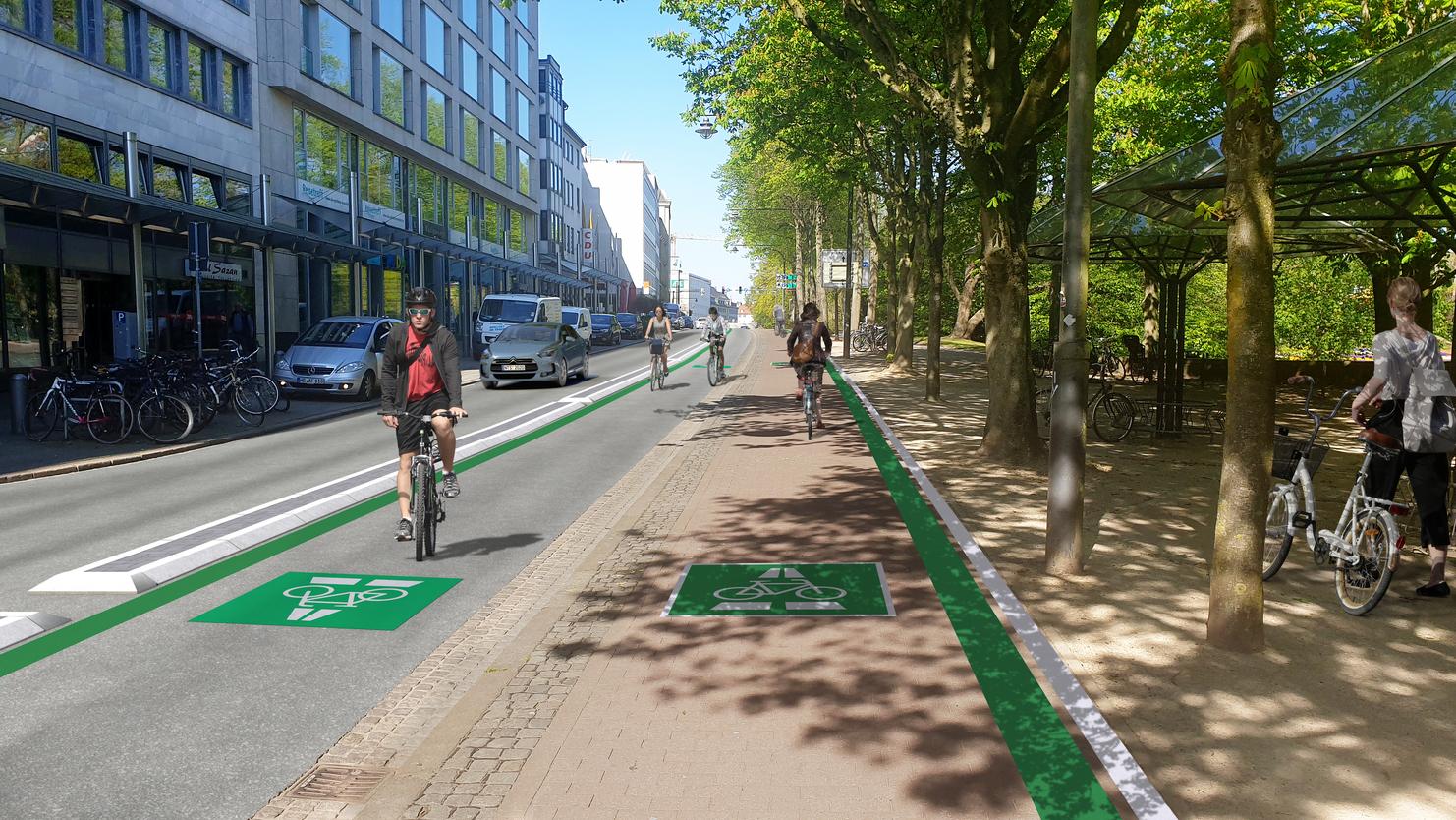 Die geplanten Verkehrsanlagen sind ein Baustein aus dem Projekt der „Fahrradroute Wallring Bremen-City“. Das Paket „Am Wall“ hat eine Streckenlänge von 2 km.