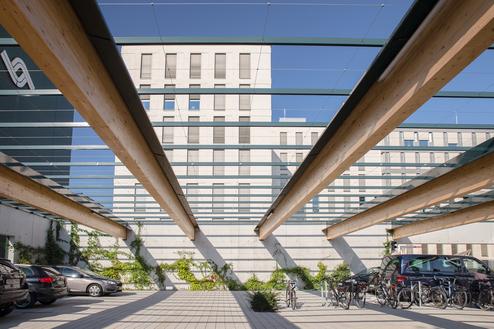 Auftraggeber AG DESRAD Immobilien GmbH & Co. KG, Münster Projekt Stellplatzanlagen (gegrünte Pergola), Fahrradstellplätze, ca. 1.500 m² Leistungen Freianlagen Zeitraum 2016 - 2018