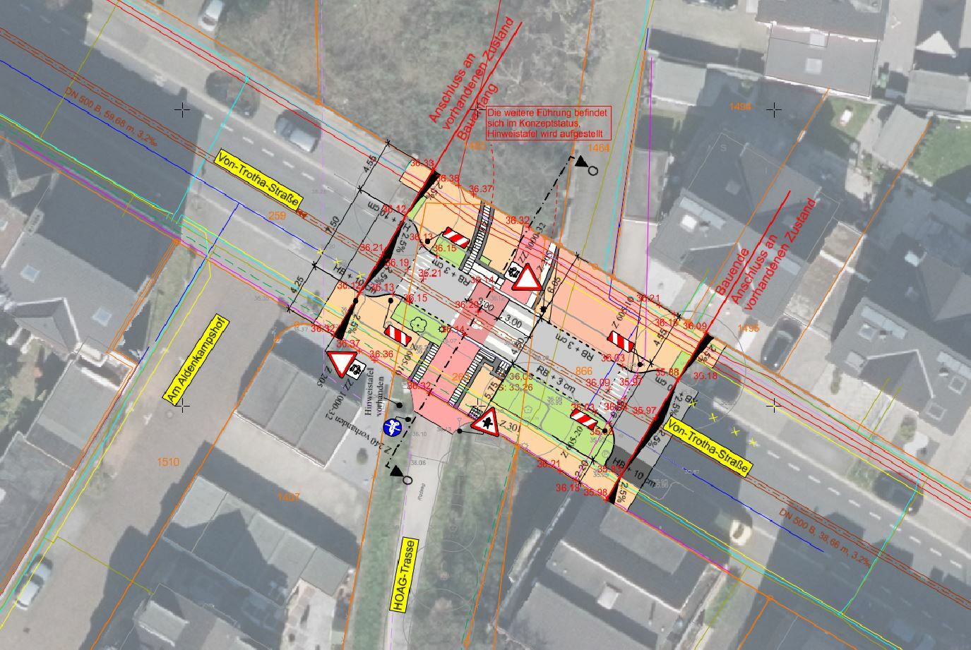 Zur Förderung des Radverkehrs ist es daher geplant, die Radfahrenden an 14 Querungsstellen möglichst zu bevorrechtigen und die Querungsstellen baulich aufzuwerten. Das Ziel ist eine deutliche Aufwertung der Radwegetrassen für den Alltags- und Freizeitradverkehr, um hierdurch den Radverkehrsanteil zu erhöhen bzw. den Anteil an MIV-Fahrten zu verringern. Neben einer Verringerung der Reisezeiten werden der Komfort und die Sicherheit für den Radfahrer beim Queren der Straße deutlich gesteigert. Es wird ein wichtiger Beitrag zur Verbesserung der Lebensqualität, der Gesundheit sowie des Klimas geleistet.