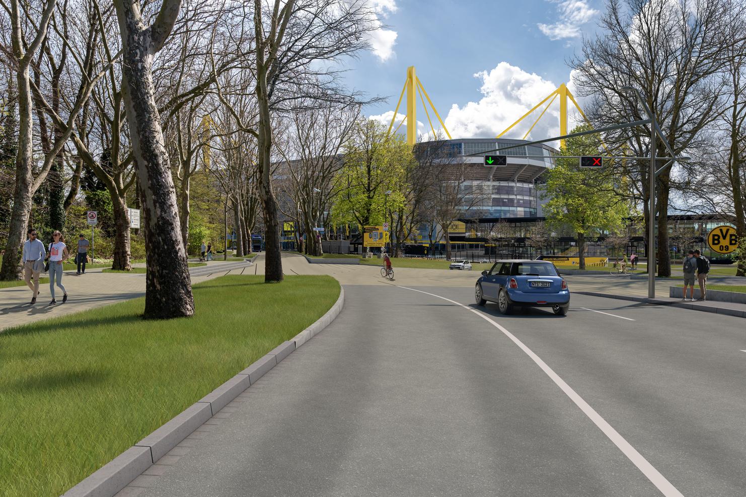 Die Straße „Im Rabenloh“ ist die Zuwegung zum Signal Iduna Park und Haupterschließungsachse für die Messeverkehre der Westfalenhallen UG und Bestandteil einer geschützten historischen Allee. An Veranstaltungstagen müssen innerhalb kürzester Zeit starke Verkehrsströme bewältigt werden. Gleichzeitig ist es Projektziel, ein hochwertig gestaltetes Erlebniszentrum mit eigener Identität und Aufenthaltsqualität zu schaffen und die vielfältigen vorhandenen Sport-, Kultur- und Freizeitangebote im Umfeld zu verknüpfen. Zum Schutz der Fußgängerströme wird ein Terrorabwehrkonzept erarbeitet, dass gestalterisch in die Verkehrs- und Freianlagen integriert ist.