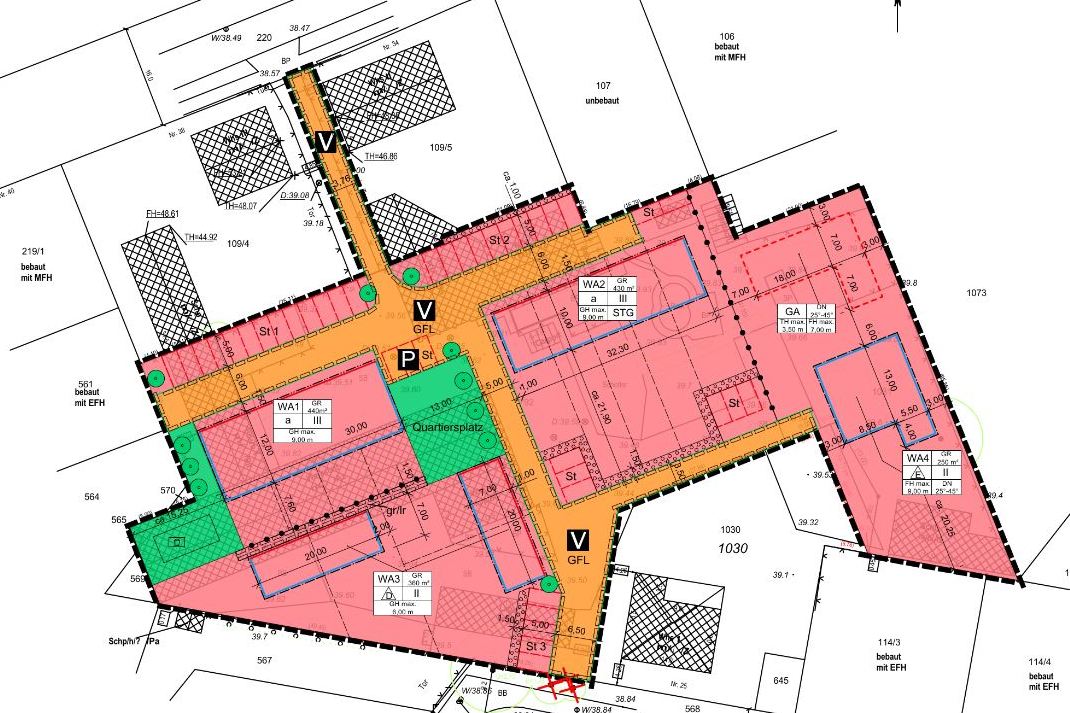 Über unterschiedliche Bautypen von Mehrfamilien-, Reihen- und Doppelhäusern ist eine innerstädtisch gemischte Baustruktur beabsichtigt.