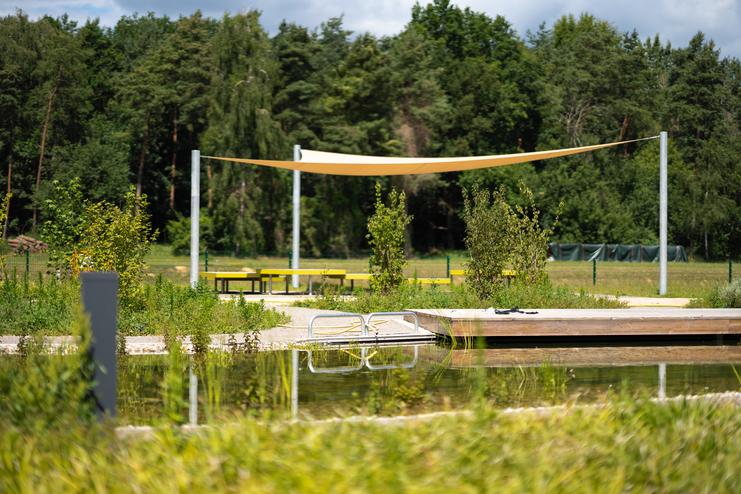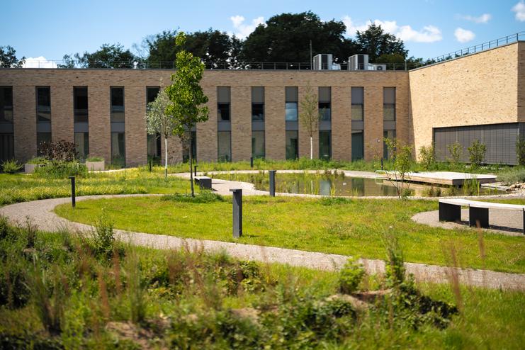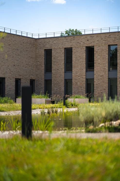 Im Bereich des gestalteten Innenhofs wird Besuchenden das Erlebnis Wasser nähergebracht.