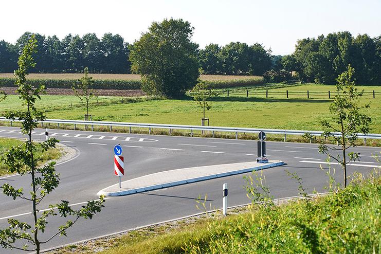 Entlastungsstraße mit kombinierten Geh- und Radweg und 3 Kreisverkehren, eingebunden in das bestehende Straßennetz, Länge 2,6 km (Westbeverner Damm - Bahnhofsstraße) - 2 Bauabschnitte Gewässerverlegung, Gewässerdurchlass, Regenrückhaltebecken