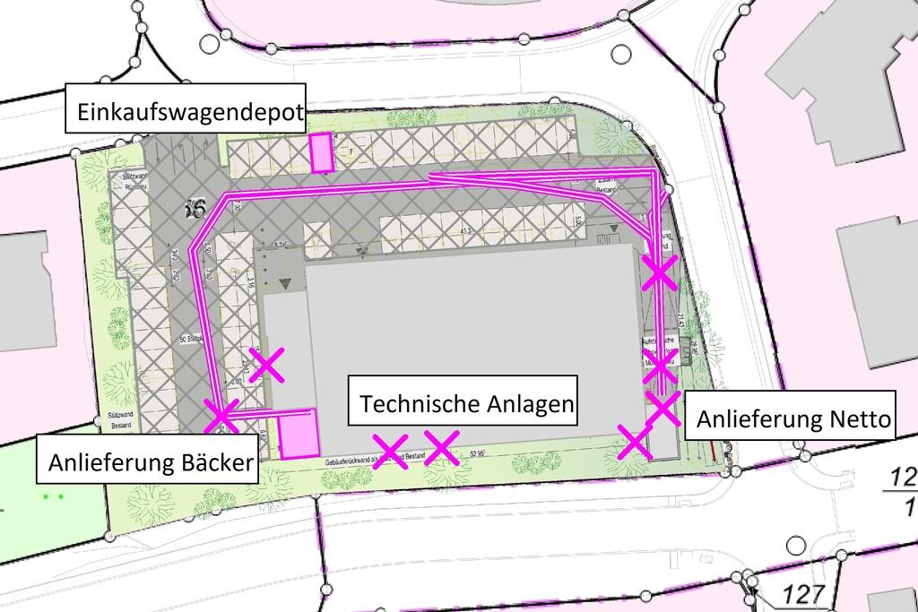 Es wurde nachgewiesen, dass die Immissionsrichtwerte der TA Lärm unter Berücksichtigung der Vorbelastung durch einen Edeka-Markt eingehalten werden.